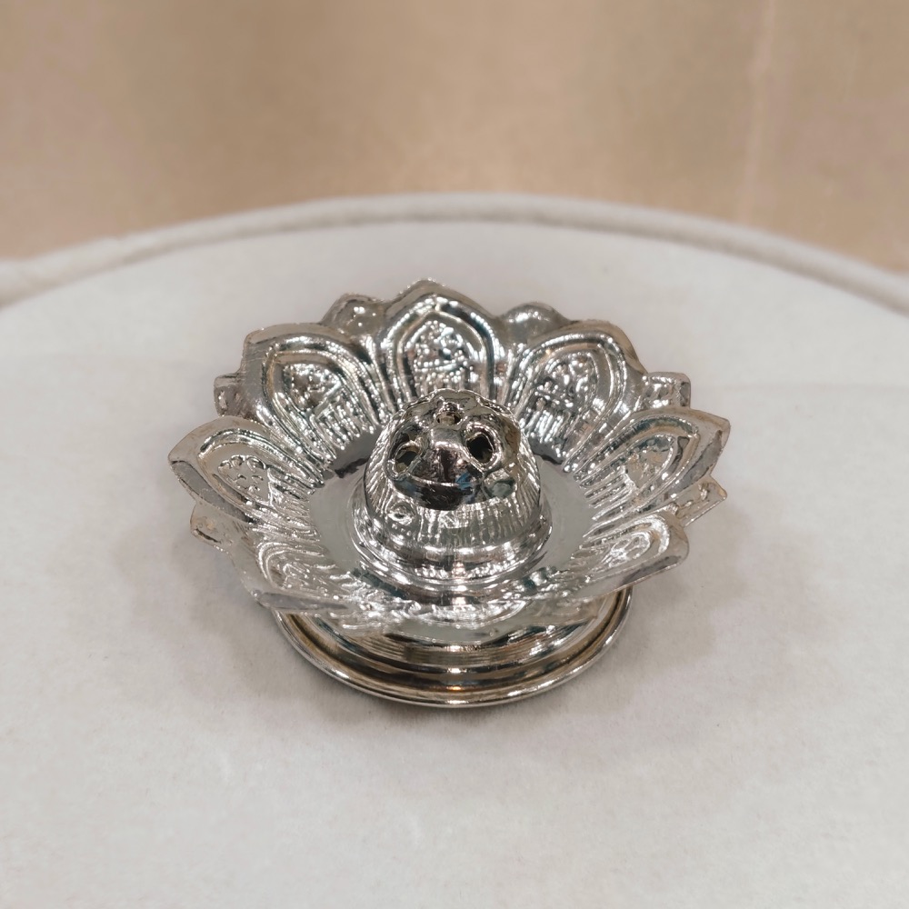 The Agarbatti Stand is a traditional pooja accessory used to hold incense sticks securely. Its elegant design helps maintain cleanliness while spreading divine fragrance during rituals. Often crafted in silver or gold-coated silver, it enhances the spiritual ambiance. A graceful addition to any home temple or pooja space.