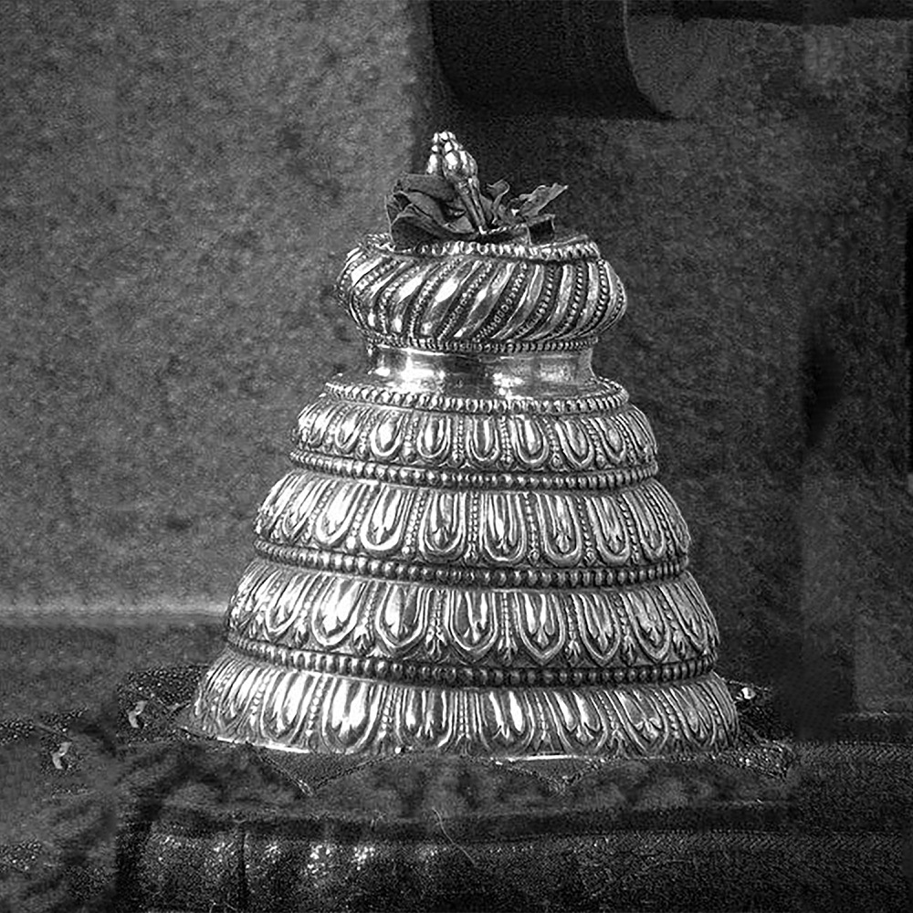 Shathgopuram is a holy silver piece used in South Indian religious rituals, especially during blessings. It is gently placed on the devotee’s head, symbolizing divine grace and protection. Made from pure silver, it carries both spiritual and cultural importance. Its presence in ceremonies reflects deep devotion and age-old tradition.