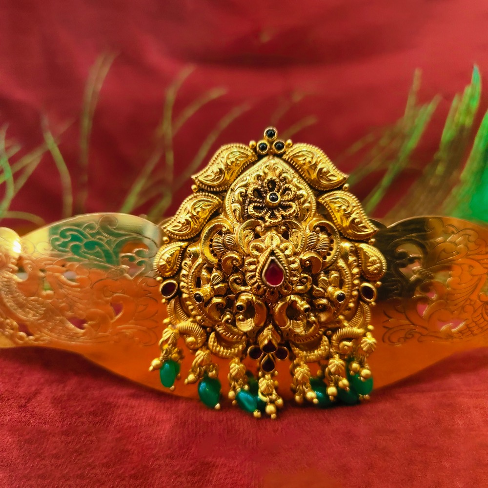The Vaddanam is a stunning waist ornament that reflects the richness of South Indian tradition. Worn during weddings and special occasions, it adds grace and grandeur to ethnic attire. Crafted in silver or gold-coated silver, each piece showcases intricate detailing and cultural artistry. A statement jewel that beautifully blends heritage with elegance.